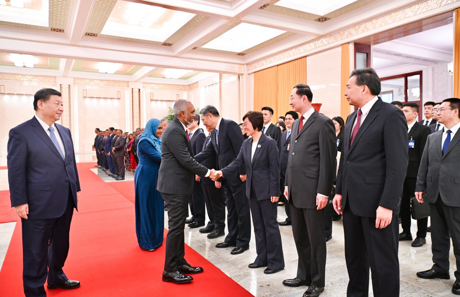 ޗައިނާ އިން ރައީސް ޑރ. މުއިއްޒަށް އަރުވަމުން ގެންދަވަނީ އެންމެ މަތީ ޝަރަފެވެ. ކިތަންމެ ކުޑަ ގައުމަކަސް ރާއްޖެ އަކީ ޗައިނާ އަށް ވަރަށް މުހިންމު ގައުމެއްކަން ރައީސް ޑރ. މުއިއްޒަށް ޗައިނާ ސަރުކާރުގެ އިސް އޮފިޝަލުން ކުރައްވާ އިހުތިރާމުން އެނގެ އެވެ. ޗައިނާގެ ކޮންމެ ޒިޔާރަތަކުން ދައްކަައި ދެނީ ސަރުކާރުގެ މެހެމާންދާރީގެ ބޮޑު ކަމެވެ.