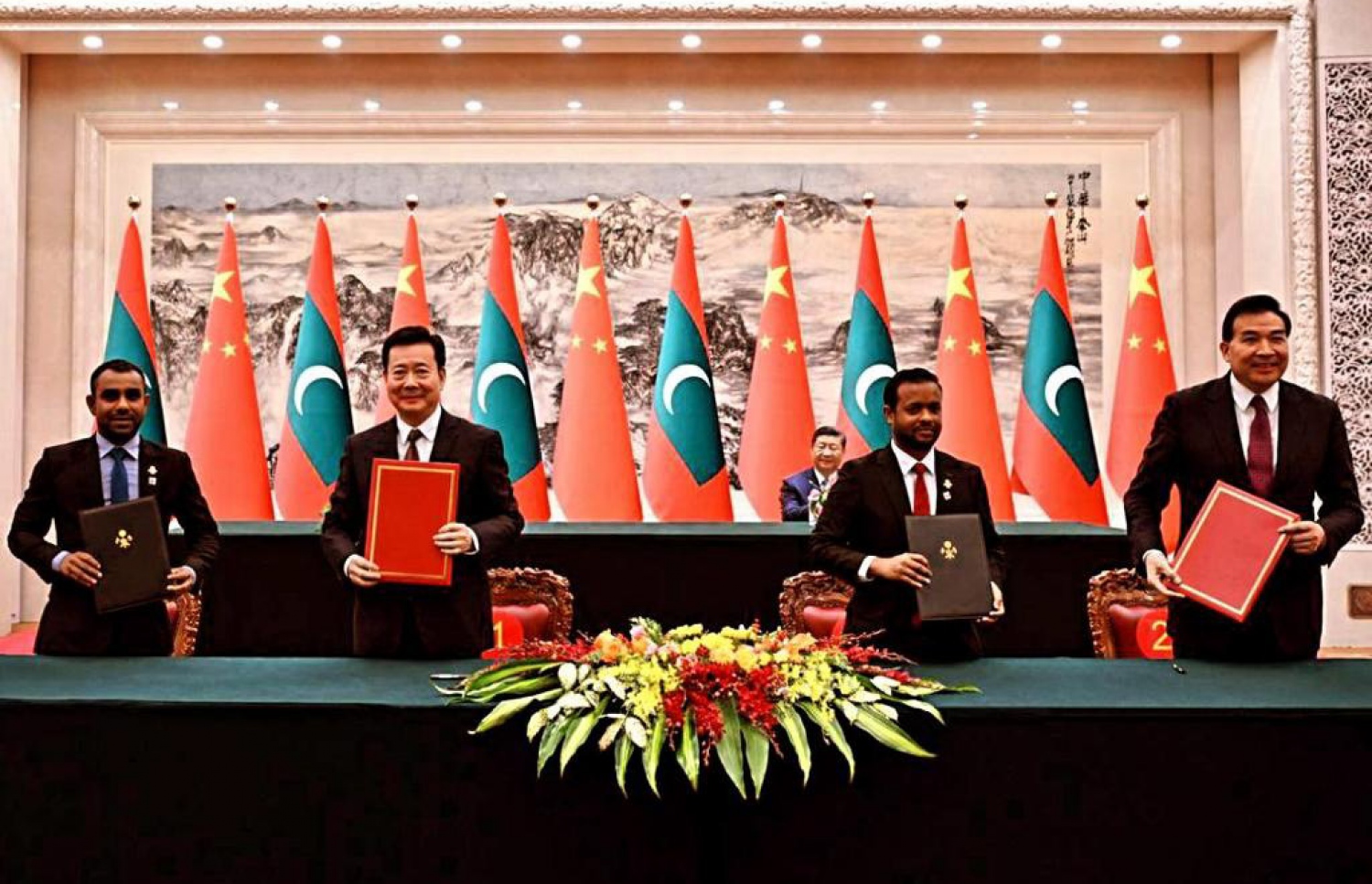 ރައީސް ޑރ. މުހައްމަދު މުއިއްޒު ޗައިނާ އަށް ކުރައްވަމުން ގެންދަވާ އެ މަނިކުފާނުގެ ފުރަތަމަ ފުރަމާނަ ދަތުރުފުޅުގައި ރައީސް ޝީ ޖިންޕިން އާ އެކު ބޭއްވެވި ރަސްމީ ވާހަކަތަކަށް ފަހު, އެމްއޯޔޫތަކުގައި ސޮއިކޮށް ނިމިގެން ނޫސްވެރިން އެ ހޯލުން ނުކުތް ވަގުތު ޗައިނާގެ ފޮރިން މިނިސްޓްރީގެ އިސް އޮފިޝަލަކު ވެސް ހައިރާން ވެފައި ވިދާޅުވި އެވެ.