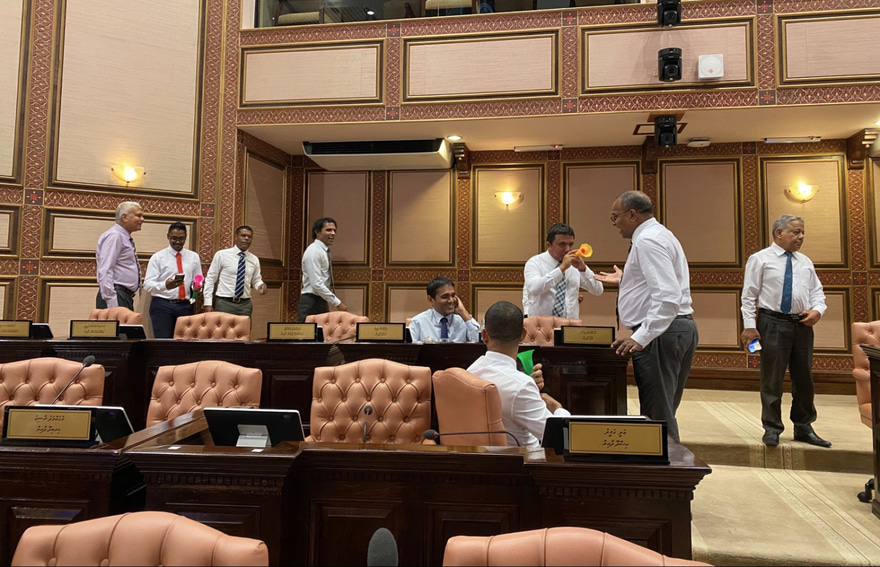ރައީސް ޑރ. މުހައްމަދު މުއިއްޒު އެކުލަވާލައްވާފައިވާ ކެބިނެޓުގެ ބައެއް ބޭފުޅުންނަށް ރުހުން ނުދޭން އިދިކޮޅު އެމްޑީޕީ އާއި ޑިމޮކްރެޓްސް ޕާޓީގެ ޕާލަމެންޓްރީ ގުރޫޕުން ނިންމުމުން، މަޖިލިހުގެ ތަޅުމުން އެ ކަމާ މެދު ގޮތެއް ކަނޑައަޅަން މިއަދު ބާއްވަން އުޅުނު މަޖިލިހުގެ ޖަލްސާ ކުރިއަށް ގެންދެވޭ ގޮތް ނުވެގެން މެދުކަނޑާލައިފި އެވެ.