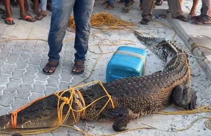 އެހެން ވީޑިއޯއެއްގައި ފެންނަނީ ޑިންގީގައި ތިބި ބަޔަކު އެ ކިނބުލުގެ އަނގަ އައްސަން އުޅޭ މަންޒަރެވެ.