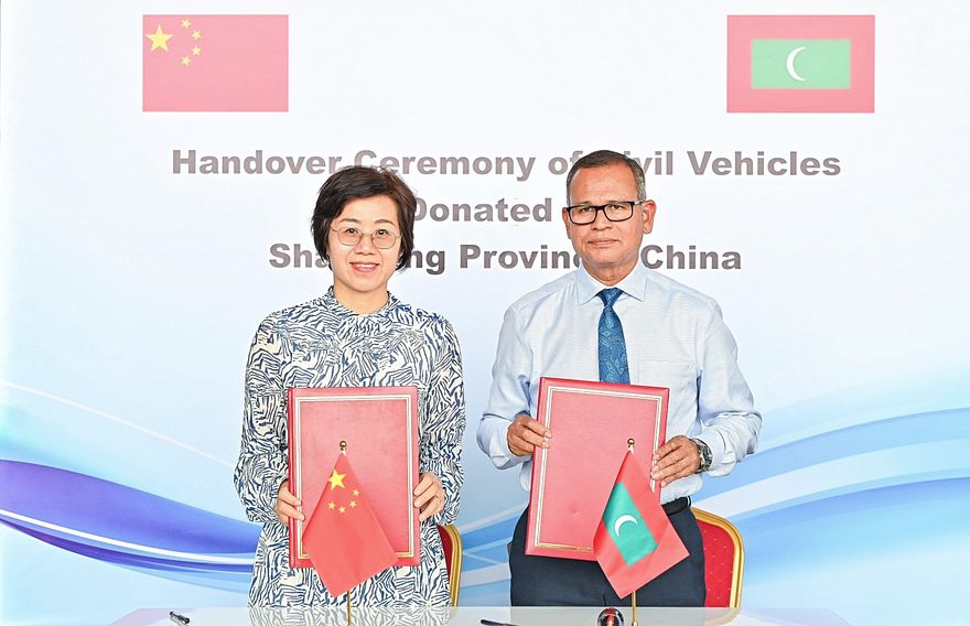 ޗައިނާގެ ޝަންޑަންގް ޕްރޮވިންސް އިން ހަދިޔާކުރި މި ޕިކަޕްތައް ދިވެހި ސަރުކާރާ ހަވާލުކުރުމަށް މިއަދު ހަވީރު މާލޭގެ ކުރީގެ ކުނިކޮށީގައި ހާއްސަ ރަސްމިއްޔާތު ޝަރަފުވެރިކޮށްދެއްވީ ޗައިނާއިން ރާއްޖެއަށް ކަނޑައަޅުއްވާފައި ހުންނަވާ ސަފީރު ވެންގް ލީޒިންގެވެ.