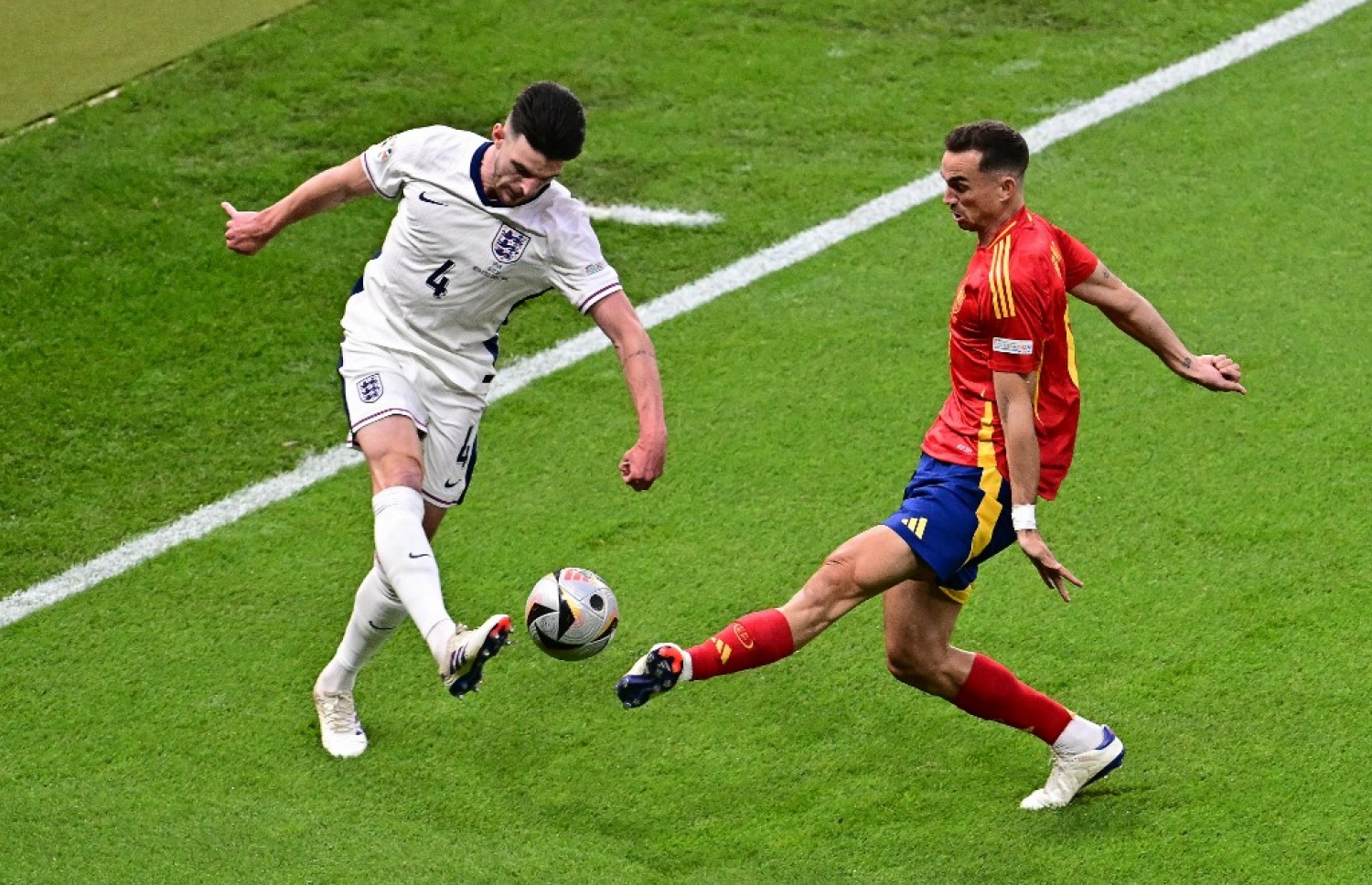 ޖަރުމަނުގެ ވެރިރަށް ބާލިންގެ އޮލިމްޕިކް ސްޓޭޑިއަމްގައި މިރޭ ކުޅުނު މެޗުގެ ފުރަތަމަ ހާފުގައި ދެ ޓީމަށް ވެސް، މާ ތަނަވަސް ފުރުސަތެއް ނުލިބެ އެވެ. އެ ހާފުގައި ލިބުނު އެންމެ ރަނގަޅު ފުރުސަތު ލިބުނީ އިންގްލެންޑްގެ ފިލިޕް ފޯޑެން އަށެވެ. މެޗުގެ އެންމެ ފަހު މިނެޓްގައި ސްޕެއިންގެ އޭރިއާ ބޭރުން އިންގްލެންޑަށް ލިބުނު ހިލޭ ޖެހުން ޑެކްލަން ރައިސް އޭރިއާ ތެރެއަށް ނަަގައި ދިނުމުން، އެ ބޯޅަ ލިބުނީ ފޯޑެން އަށެވެ. އޭނާ މަސައްކަތް ކުރީ ގޯލްގެ ނިއާ ޕޯސްޓަށް ބޯޅަ ފޮނުވާލަށެވެ. އޭނާ ޖެހި ބޯޅަ ސްޕެއިންގެ ކީޕަރު އުނައި ސިމޯން ދިފާއު ކުރި އެވެ.