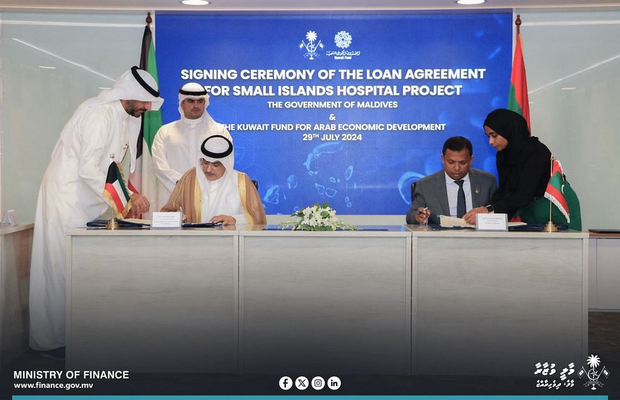 ފިނޭންސް މިނިސްޓްރީން ބުނީ ރާއްޖޭގެ ސިއްހީ ނިޒާމު އިތުރަށް ހަރުދަނާ ކުރުމުގެ މަގުސަދުގައި އުފައްދާފައިވާ "ސްމޯލް އައިލޭންޑްސް ހޮސްޕިޓަލް ޕްރޮޖެކްޓް"ގެ ލޯނު އެއްބަސްވުމުގައި ކުވައިތު ފަންޑު ފޯ އަރަބް އިކޮނޮމިކް ޑިވެލޮޕްމަންޓުގެ އެކްޓިން ޑިރެކްޓަ ޖެނެރަލް ވަލީދު އަލް ބަހަރް އަދި ރާއްޖޭގެ ފިނޭންސް މިނިސްޓަރު ޑރ. މުހައްމަދު ޝަފީގު ސޮއިކުރައްވާފައިވާ ކަމަށެވެ.