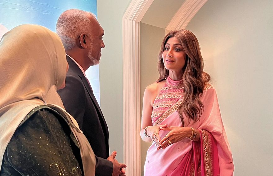ރައީސް މުއިއްޒު މުމްބާއީގައި ހުންނަވާ ތާޖު މަހަލް ޕެލަސްގައި ބޭއްވި އިވެންޓަށް މިހާތަނަށް ރާއްޖެ އަށް ޒިޔާރަތް ކޮށްފައިވާ ބޮލީވުޑްގެ މަޝްހޫރު ބައެއް ތަރިން އައިސް އެ މަނިކުފާނުގެ ދެކަނބަލުންނާ ބައްދަލުކުރައްވައި ރާއްޖެ އަށް އޮތް ލޯބި ހާމަކޮށްދިނެވެ.