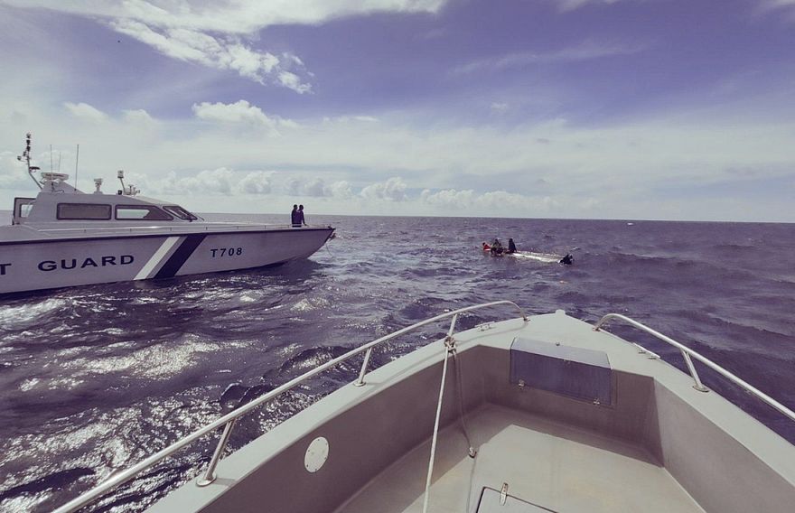 އެމްއެންޑީއެފުން އެކްސްގައި އާންމުކުރި ވީޑިއޯގައި ފެންނަނީ ކޯސްޓްގާޑުގެ އުޅަނދު އެތަނަށް ދިޔައިރު އެ މީހުން ޑިންގީގެ މަތީގައި އިށީގެންދެގެން ތިއްބަ އެވެ.