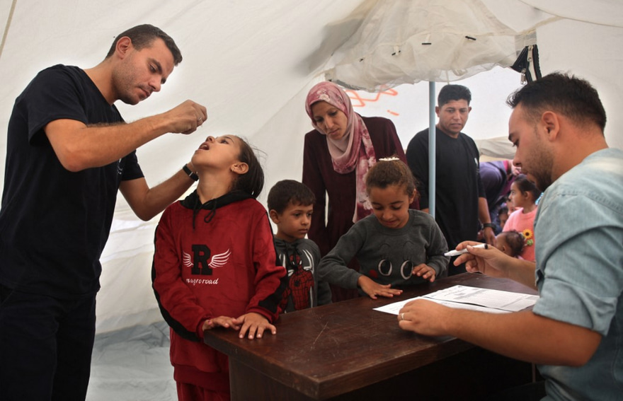 ޣައްޒާއަށް އިޒްރޭލުން ދެމުން ގެންދާ ހުއްޓުމެއް ނެތް ހަމަލާތަކުގައި މީހުން ހާލުގައި ޖެހި ސާފުތާހިރުކަމެއް ނެތި އުޅެން ޖެހިފައިވުމުގެ ސަބަބުން ޕޯލިއޯގެ ކޭސްތައް ދަނީ ފެންނަމުންނެވެ. ޑަބްލިޔުއެޗްއޯ އިން ބުނާ ގޮތުގައި އެ ސިޓީގައި ޕޯލިއޯ ވެކްސިންގެ ދެ ވަނަ ޑޯޒް ދޭން ޖެހިފައި ތިބި 119،000 ކުދިން ޣައްޒާގައި އެބަ ތިއްބެވެ. އަދި ޣައްޒާގެ ދެކުނުގައި މިހާރު 452،000 ކުއްޖަކަށް ވެކްސިން ދީފައިވާ ކަމަށް ވެސް ބުންޏެވެ.