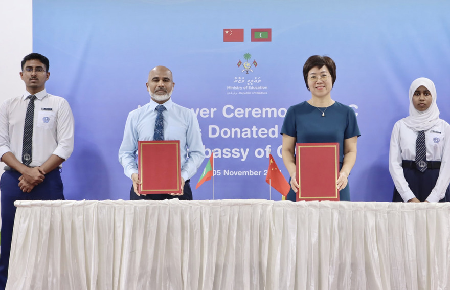 މާލެ ސީއެޗްއެސްއީގައި ބޭއްވި ރަސްމިއްޔާތެއްގައި އެ ތަކެތި ދިވެހި ސަރުކާރާ ހަވާލު ކޮށްދެއްވީ ރާއްޖޭގައި ހުންނަވާ ޗައިނާގެ ސަފީރު ވަންގް ލިޒިން އެވެ. ދިވެހި ސަރުކާރުގެ ފަރާތުން އޭސީތަކާ ހަވާލުވެވަައިގަތީ އެޑިޔުކޭޝަން މިނިސްޓަރު ޑރ. އިސްމާއިލް ޝަފީއު އެވެ.