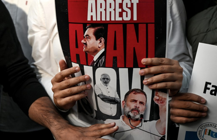 އިދިކޮޅު ލީޑަރު ރާހުލް ގާންދީ އިއްޔެ ބޭއްވި ނޫސްވެރިންގެ ބައްދަލުވުމެއްގައި ވަނީ އަދާނީ ހައްޔަރުކުރުމަށާއި ސެބީގެ ވެރިޔާގެ މަގާމުން ބުޗް ދުރުކުރުމަށް ގޮވާލައްވައިފަ އެވެ. އަދި އަދާނީ އަށް މޯދީ ހިމާޔަތް ދެއްވާ ކަމަށް އޭނާ ތުހުމަތު ކުރެއްވި އެވެ.