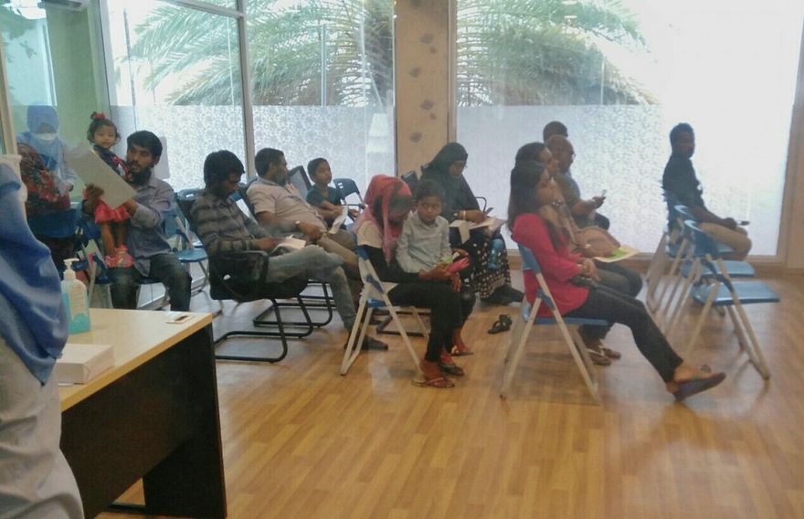 "މިއޮތީ، މިތަނުގެ ހާލަތު އޮތް ގޮތް، ކުޑަކުދިންނަށް ނަމްބަރު ނަގައިގެން ވެސް ހަތަރު، ފަސްގަޑިއިރު މިތަނުގައި ތިބެން އެބަޖެހޭ. އިއްޔެ ހަވީރު ނެގި ނަމްބަރު ޖެހުނީ ރޭ ނުވައެއް ވެސް ޖެހިފަހުން،" ދެ ކުދިން ގޮވައިގެން ޓެސްޓު ހަދަން ގޮސް ހުރި ފިރިހެނަކު ބުންޏެވެ.