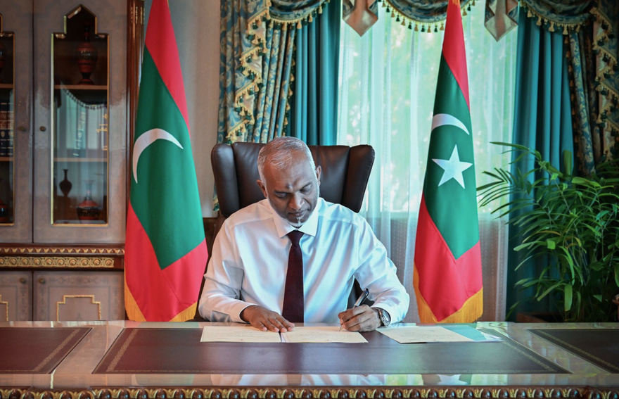 ރައީސް މުއިއްޒު ވަނީ އެ ބިލް ރައްޔިތުންގެ މަޖިލިހުން މިއަދު ފާސްކުރިތާ މާ ގިނައިރުތަކެއް ނުވެ ބިލް ތަސްދީގު ކުރައްވައިފަ އެވެ.