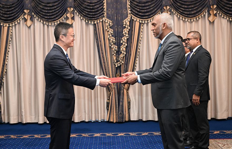 ޗައިނާއިން ރާއްޖެއަށް ކަނޑައެޅި އާ ސަފީރު އޭނާގެ މަގާމުގެ ފަތްކޮޅު ރައީސް ޑރ. މުހައްމަދު މުއިއްޒަށް މިއަދު އަރުވައިފި އެވެ.