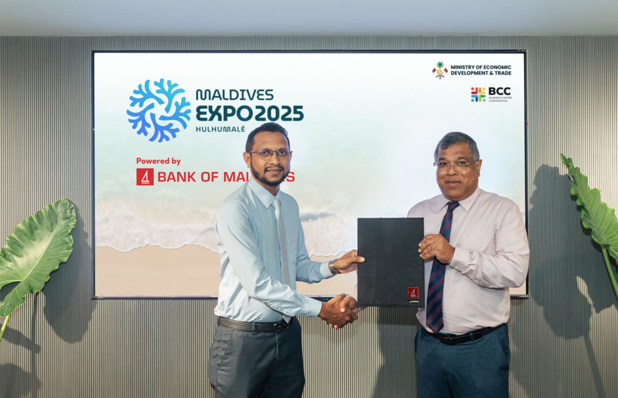 ރާއްޖޭގެ ސަގާފަތާއި އުފެއްދުންތެރިކަމާއި މުނިފޫހިފިލުވުމުގެ ހަރަކާތްތައް ހިމެނޭހެން ދިވެހި ވިޔަފާރިތަކުގެ އުފެއްދުންތައް ދައްކުވައިދޭން ބާއްވާ މޯލްޑިވްސް އެކްސްޕޯ 2025 ގެ މެއިން ސްޕޮންސަރަކަށް ގައުމީ ބޭންކު، ބޭންކް އޮފް މޯލްޑިވްސް (ބީއެމްއެލް) ހަމަޖައްސައިފި އެވެ.