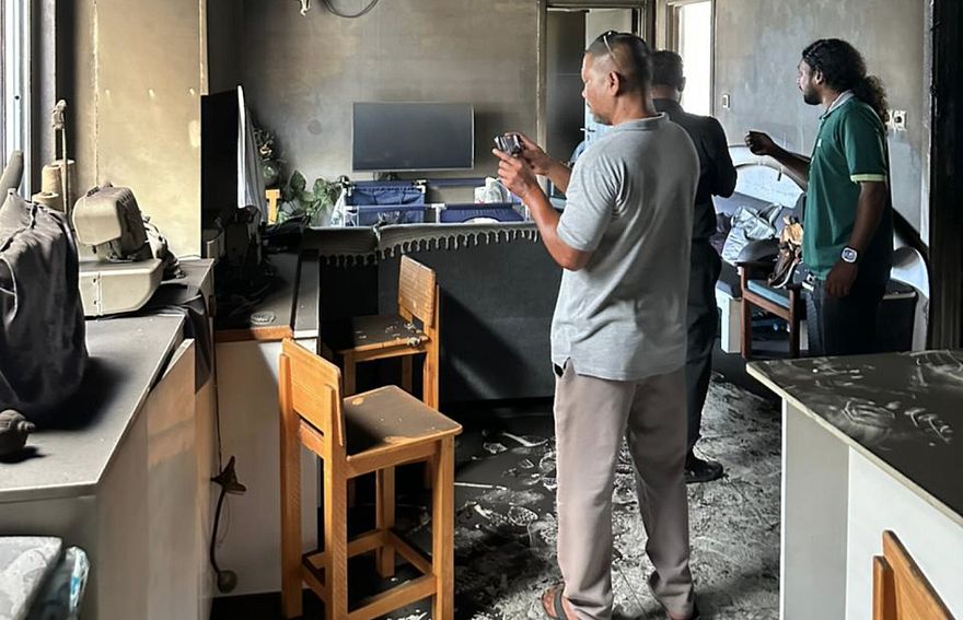 އަލިފާން ރޯވި ތަނުގެ ފޮޓޯތަކުން ފެންނަ ގޮތުގައި އެޕާޓްމަންޓުގައި ހުރި ސާމާނުތައް ވަނީ ބޭނުން ނުކުރެވޭ ވަރަށް އަނދައި ހުލިވެފަ އެވެ. ބަންކް ބެޑެއް އެއްކޮށް އަނދާފައިވާ އިރު، ސިޓިންރޫމްގައި ހުރި ސާމާނު ވެސް ވަނީ ވަރަށް ބޮޑަށް އަނދައިފަ އެވެ. މުޅި އެޕާޓްމަންޓް ވަނީ ދުމުން ކަޅުވެފަ އެވެ.