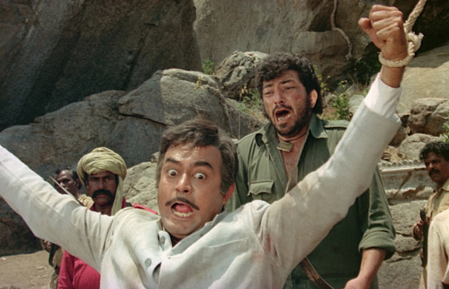 އެ ފިލްމުގެ ނިމޭ މަންޒަރު ޑައިރެކްޓަރު ޝޫޓް ކޮށްފައި ވަނީ ޓާކޫރް (ސަންޖީވް ކުމާރު)ގެ އަތުން ގައްބަރް (އަމްޖަދު ޚާން) މަރުވާ ގޮތަށެވެ. ނަމަވެސް، އެ ނިންމުމާ ސެންސަރު ބޯޑުން ހިތްހަމަނުޖެހިގެން ބަދަލުކުރަން އެންގުމުން ފިލްމުގައި ފެންނަނީ ބަދަލުކޮށްފައިވާ ގޮތަށެވެ. އެ ފިލްމުން ފެންނަނީ ޓާކޫރު ގައްބަރް މަރާލުމުގެ ކުރިން ފުލުހުން އެތަނަށް ދާ ތަނެވެ. އަދި ފުލުހުންނާ ގައްބަރް ހަވާލުކުރާ ތަނެވެ.