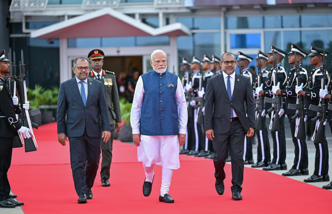 ރައީސް ޑރ. މުހައްމަދު މުއިއްޒުގެ ދައުވަތަކަށް އިއްޔެ ހެނދުނު ރާއްޖެ ވަޑައިގެން މޯދީ ވަނީ މުހިއްމު ހަތަރު އެމްއޯޔޫ އަކާއި ތިން އެއްބަސްވުމެއްގައި ސޮއިކުރެއްވުމުގެ އިތުރުން ރާއްޖެއާ އެކު ފްރީ ޓްރޭޑް އެގްރީމެންޓެއްގެ މަޝްވަރާ ފެށިކަން ވެސް އިއުލާނު ކުރައްވައިފަ އެވެ.