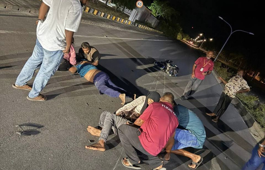 މިރޭ 7:30 ވާން އުޅެނިކޮށް އެ އެކްސިޑެންޓު ހިނގީ ކައްދޫ އެއާޕޯޓު ކައިރިން ޒިބްރް ކްރޮސް އިން މަގު ހުރަސްކުރަން އުޅުނު ބައެއްގެ ގައިގައި ސައިކަލަކުން ޖެހިގެންނެވެ.