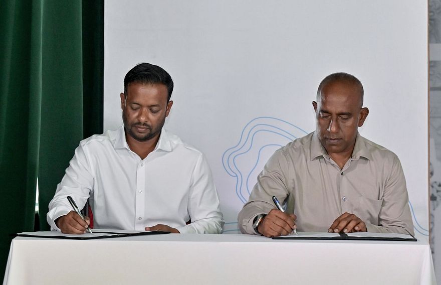ރައީސް ޑރ. މުހައްމަދު މުއިއްޒު މިހާރު ހދ. އަތޮޅަށް ކުރައްވާ ދަތުރުފުޅުގެ ތެރެއިން ނައިވާދޫއަށް މިއަދު ވަޑައިގެން އެރަށުގައި ބޭއްވި ރަސްމިއްޔާތެއްގައި، ބިން ހިއްކުމުގެ އެއްބަސްވުމުގައި ސަރުކާރުގެ ފަރާތުން ސޮއި ކުރެއްވީ ކޮންސްޓްރަކްޝަން މިނިސްޓަރު ޑރ. އަބްދުﷲ މުއްތަލިބެވެ. އަދި އެމްޓީސީސީގެ ފަރާތުން ކުރެއްވީ އެ ކުންފުނީގެ ސީއީއޯ އަހުމަދު ސައުދީ އެވެ.