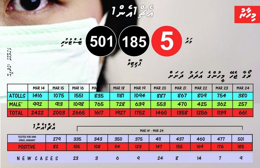 އާންމު ރޯގާއަށް ވުރެ ކަންބޮޑުވުން އޮތީ އެޗް1އެން1 ފެތުރޭތީ އެވެ. މިދިޔަ ޖެނުއަރީ މަހުން ފެށިގެން މިހާތަނަށް 501 މީހަކު އެޗް1އެން1 އަށް ޝައްކުވެ ޓެސްޓްކުރި އިރު އޭގެ ތެރެއިން 185 މީހަކު ވަނީ ޕޮޒިޓިވް ވެފަ އެވެ. ފަސް މީހަކު އޭގެ ތެރެއިން މަރުވެއްޖެ އެވެ.