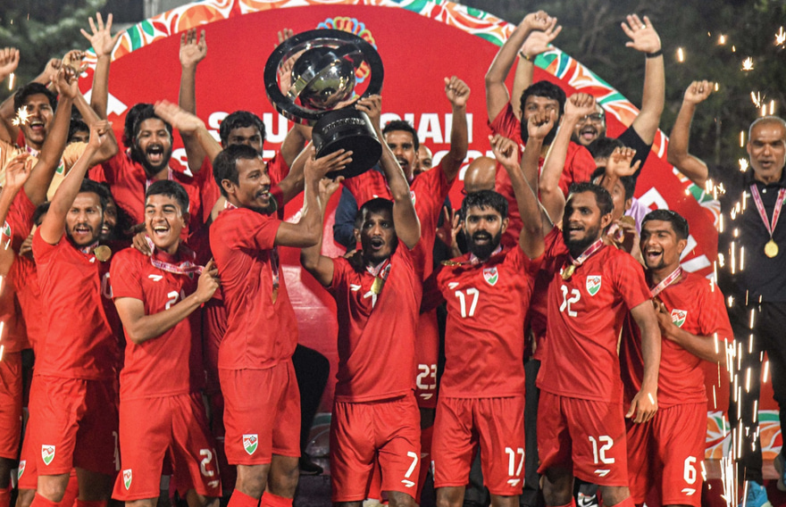 ދެ ލެގުގެ އެގްރިގޭޓުން ސްރީ ލަންކާގެ މައްޗަށް ކުރި ހޯދައި އެ ގައުމުން އިންތިޒާމުކުރި ސައުތު އޭޝިއަން ސުޕަ ކަޕްގެ ޓައިޓަލް ރާއްޖޭން ހޯދައިފި އެވެ.