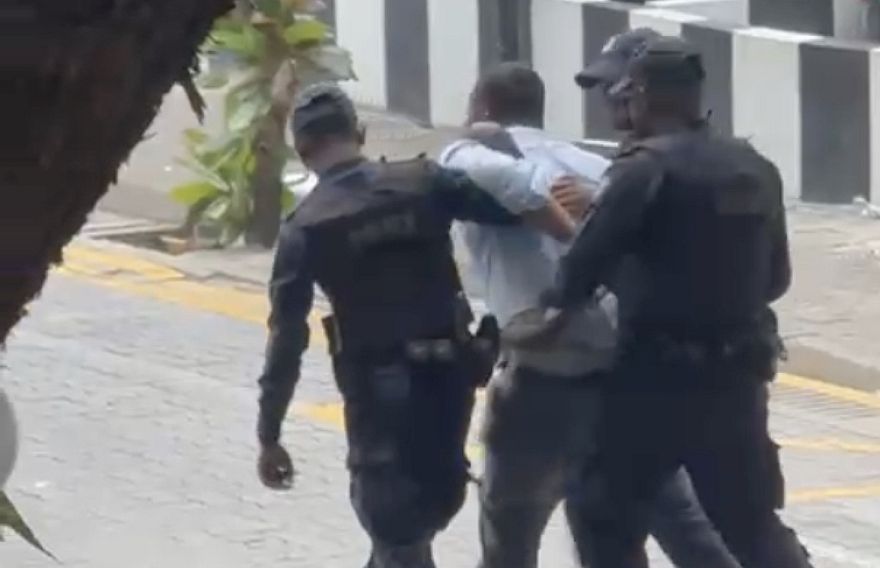 ފުލުހުން ބުނީ އެ މުޒާހަރާގައި، ދައުލަތުގެ މުވައްޒަފުންގެ މަސައްކަތަށް ހުރަސްއަޅާފައިވާ މައްސަލައިގައި 40 އަހަރާއި 28 އަހަރުގެ ދެ ފިރިހެނުން ހައްޔަރު ކޮށްފައިވާ ކަމަށެވެ. އޭގެތެރެއިން އެކަކީ ލީވާންކަން އާއްމުވެފައިވާ ވީޑީއޯ އިން ފެނެ އެވެ.
