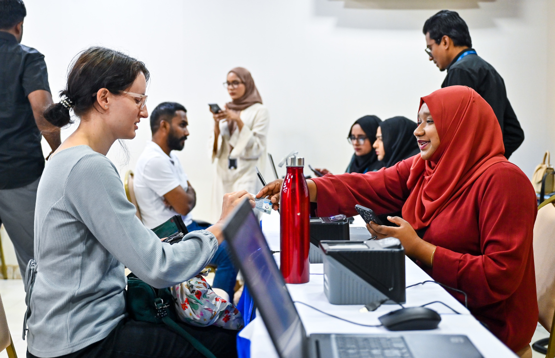 ރާއްޖޭގައި އުޅޭ ބިދޭސީންގެ މައުލޫމާތު އެއްކުރުމަށް ހިންގާ "ކުރަނގި" އޮޕަރޭޝަންގައި ބިދޭސީއެއްގެ ބަޔޯމެޓްރިކްސް ނަގަނީ.-- ފޮޓޯ: ފަޔާޒު މޫސާ | މިހާރު