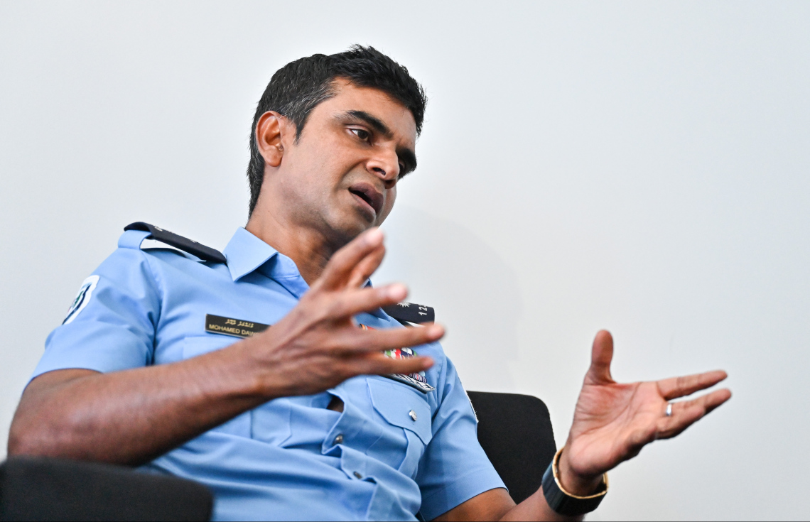 އެސިސްޓެންޓް ކޮމިޝަނަރު އޮފް ޕޮލިސް މުހައްމަދު ދާއޫދު މީގެކުރިން "މިހާރު"އަށް އިންޓަވިއުއެއް ދެއްވަނީ: ކޮރަޕްޝަންގެ ތުހުމަތައް ދޮގުކުރެއްވި - ފޮޓޯ: މިހާރު