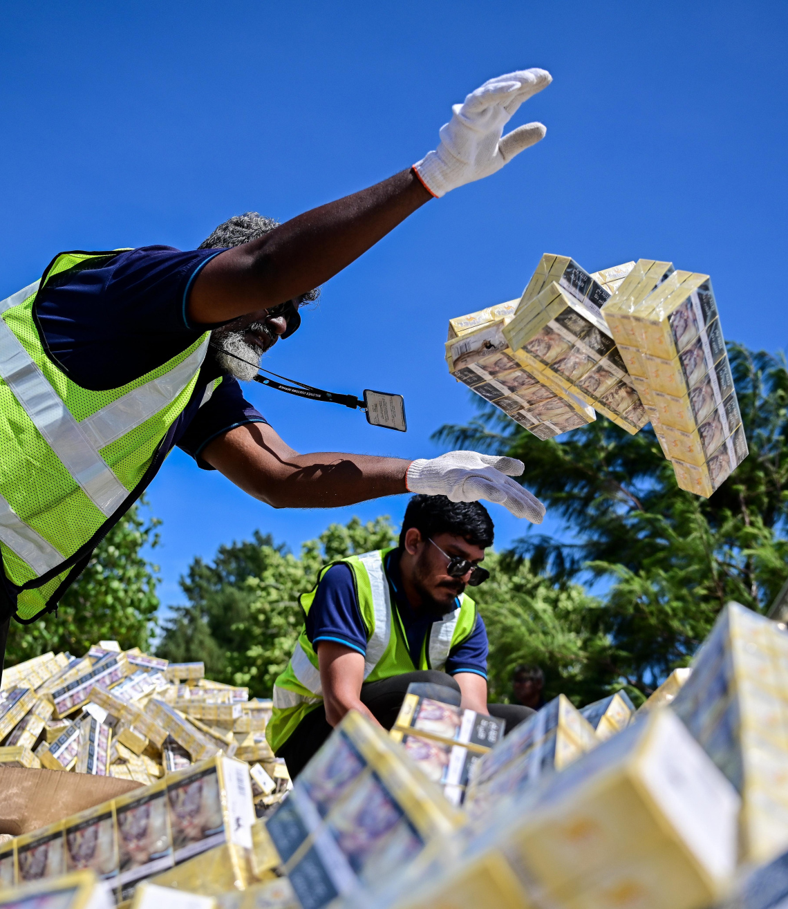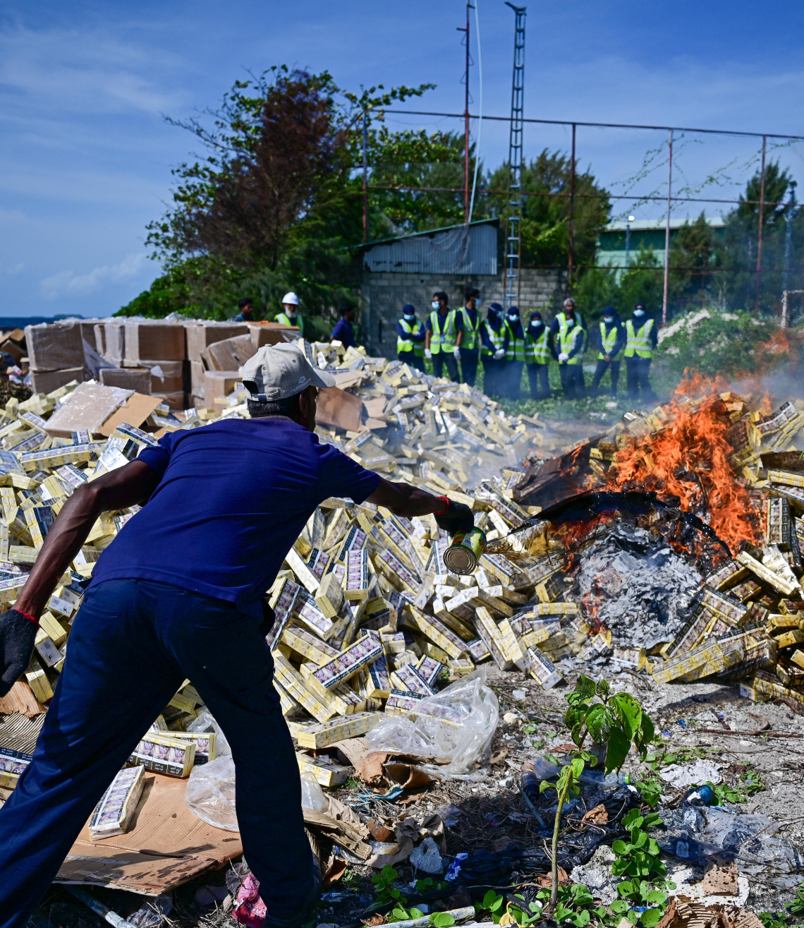 ކަސްޓަމްސް އިން ބުނީ ކަސްޓަމްސްގެ ބެލުމުގެ ދަށުގައި ހުރި 199 ސިނގިރޭޓް ކޭސް މިއަދު ނައްތާލާފައިވާ ކަމަށެވެ. އެއީ 3.1 މިލިއަން ސިނގިރޭޓެވެ. ރާއްޖެއަށް ގަވާއިދާ ހިލާފަށް އެތެރެކުރަން އުޅެނިކޮށް ހިފެހެއްޓި އެ ތަކެތި ނައްތާލީ ދޫނިދޫގަ އެވެ.