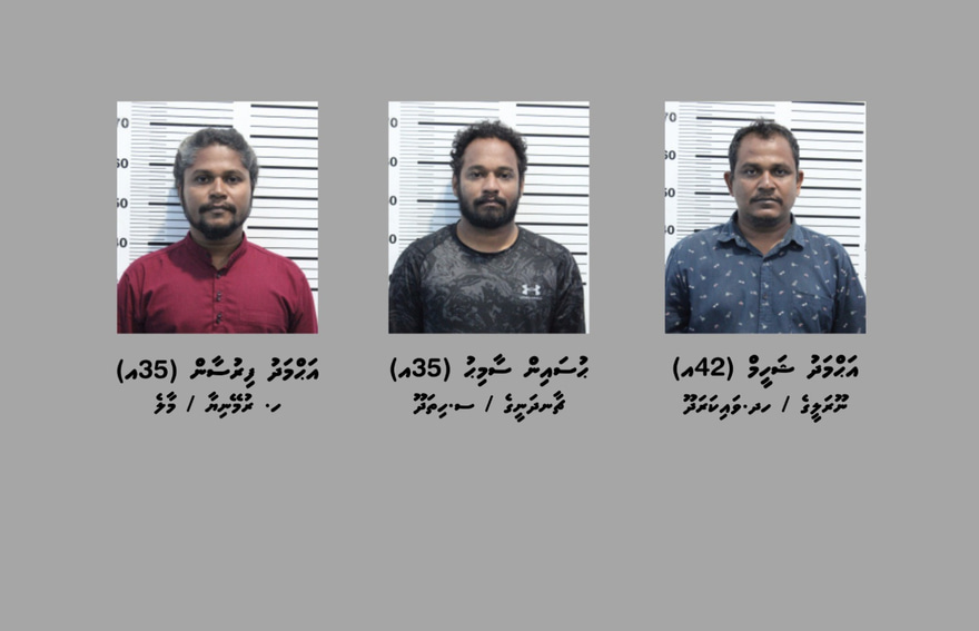 އެ ތިން މީހުން ވެސް ހައްޔަރުކުރީ މިދިޔަ ހުކުރު ދުވަހު އެވެ. އަދި ކްރިމިނަލް ކޯޓުން އިއްޔެ ވަނީ ތަހުގީގުގެ ބޭނުމަށް އެ މީހުން ބަންދު ކުރުމުގެ އަމުރު ދީފަ އެވެ.