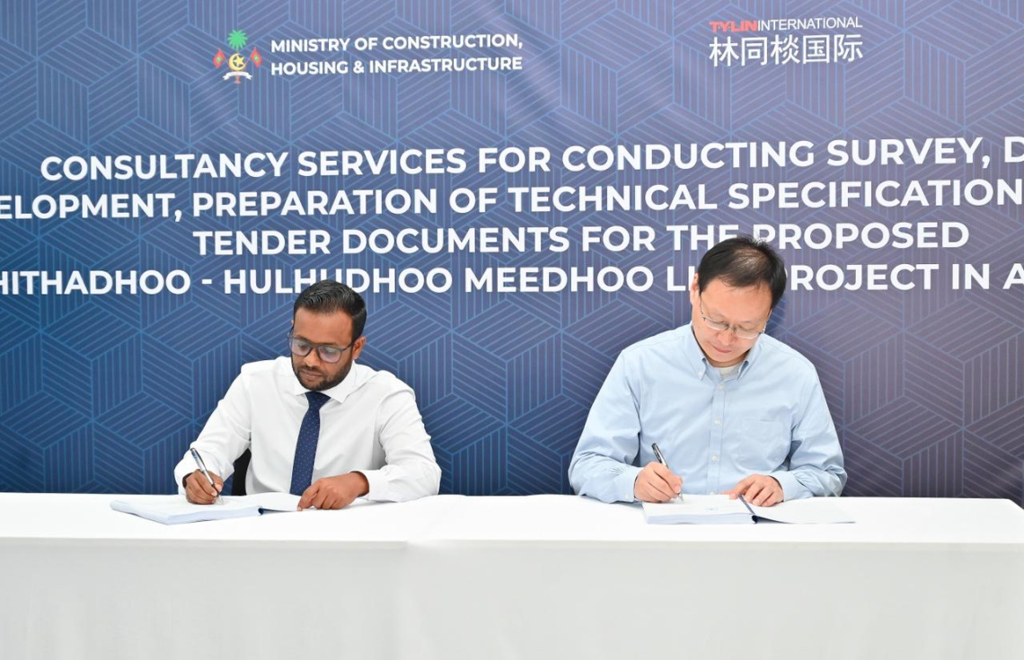 އައްޑޫ ހިތަދޫ އާއި ހުޅުދޫ އަދި މީދޫ ބްރިޖް ކޮންސަލްޓަންސީ ޗައިނާ ކުންފުންޏަކާ ހަވާލުކުރަނީ.-- ފޮޓޯ: ހައުންސިން މިނިސްޓްރީ
