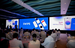 ބީއެމްއެލްގެ ބައެއް ހިދުމަތްތައް ތައާރަފުކުރަން ބާސެލޯ ނަސަންދުރާގައި ބޭއްވި ރަސްމިއްޔާތުގައި އެ ބޭންކުގެ މުވައްޒަފުން ބައިވެރިވަނީ.-- ފޮޓޯ: ރައީސް އޮފީސް