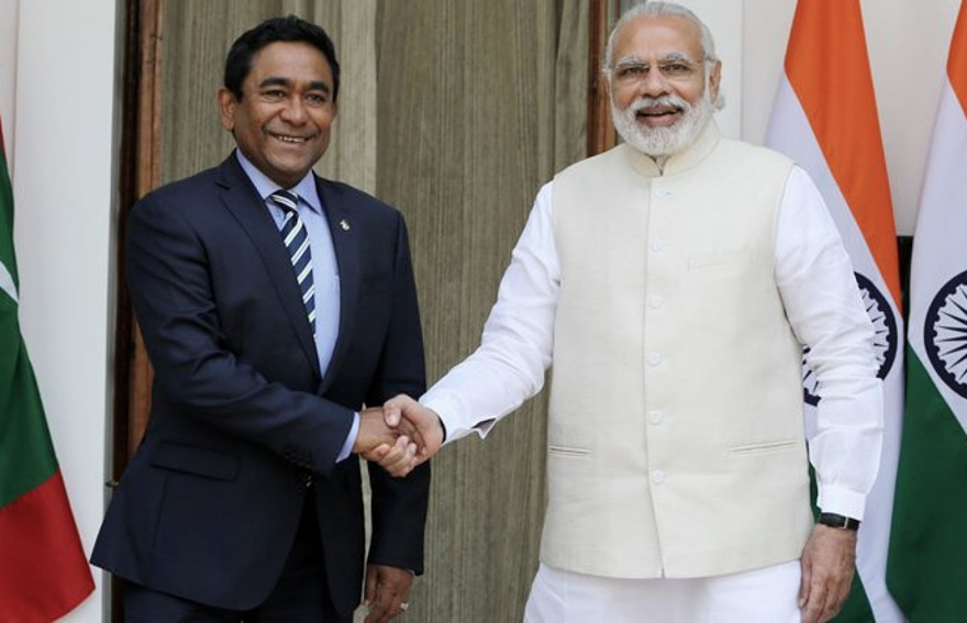 ކުރީގެ ރައީސް އިބްރާހިމް މުހައްމަދު ސޯލިހުގެ ވެރިކަމުގައި އިންޑިއާއާ އެކު ބޭއްވި ގާތްގުޅުމާއި އިންޑިއާ އިން ދީފައިވާ ހެލިކޮޕްޓަރާއި ޑޯނިއާ މަތިންދާބޯޓު އޮޕަރޭޓް ކުރަން އިންޑިއާ ސިފައިން ރާއްޖޭގައި ގާއިމްވި ތިބޭތީ އެ ކަމާ ދެކޮޅަށް ހިންގި "އިންޑިއާ އައުޓް" ކެމްޕެއިންގައި ވެސް ޔާމީންގެ ދައުރު ވަރަށް ބޮޑެވެ. އަދި ޔާމީންގެ ވެރިކަމުގައި ދެ ގައުމުގެ ގުޅުން ވެސް ގޯސްވި އެވެ.