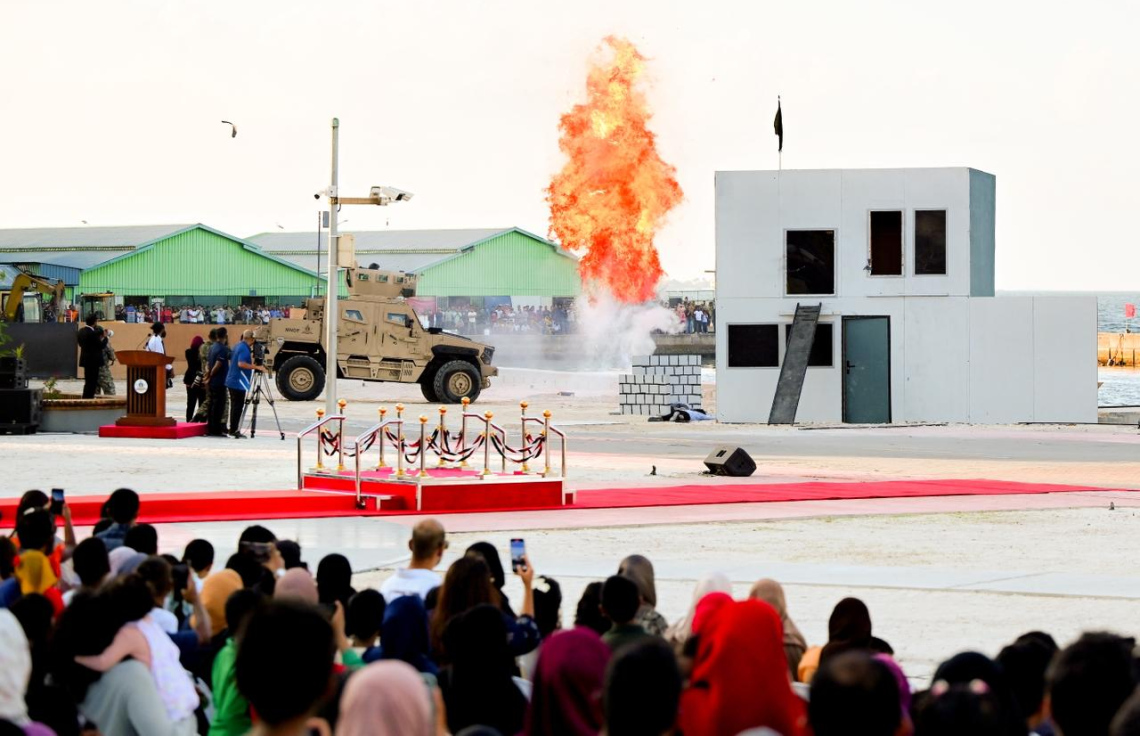 މިއަދު ފާހަގަކުރަމުން އަންނަ ނަސްރުގެ ދުވަހުގެ މުނާސަބަތުގައި ޖުމްހޫރީ މައިދާނުގައި ބޭއްވި ހާއްސަ ހަރަކާތުގައި "ދުޝްމަނުންނާ" ދެކޮޅަށް ސިފައިންގެ މަނަވަރު ހަރަކާތްތެރިވަނީ: މިއީ ތުރުކީން ރާއްޖެ އަށް އެންމެ ފަހުން ހަދިޔާކުރި މަނަވަރު---ފޮޓޯ: ނިޝާން އަލީ| މިހާރު
