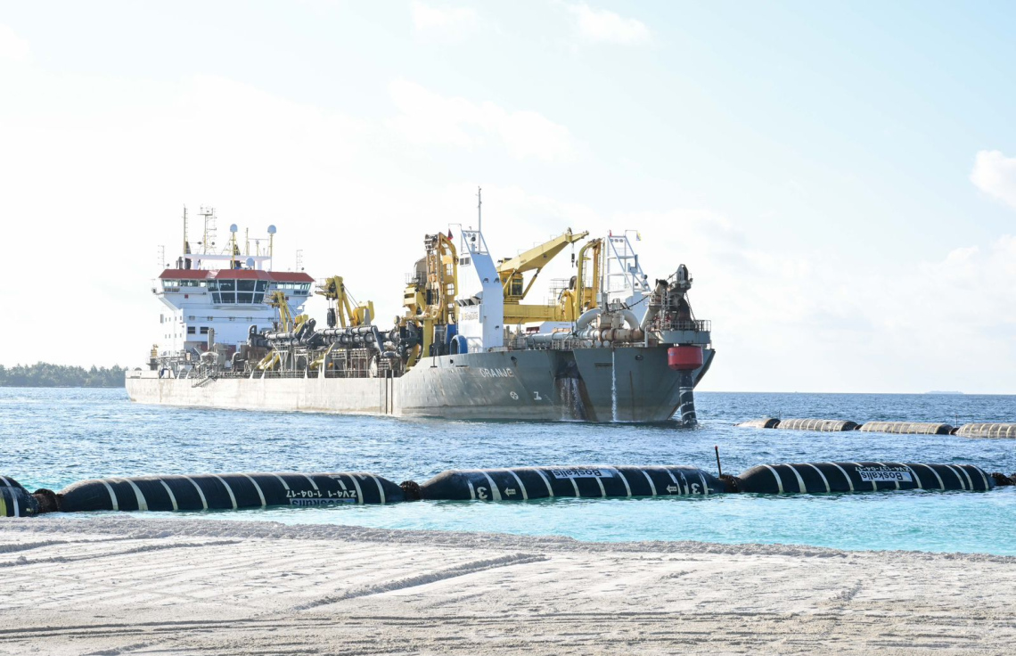 ހުޅުމާލެ ފޭސް ތިނެއް ހިއްކުމުގެ މަސައްކަތް މެދުކެނޑިފައި އޮތުމަށް ފަހު، މިއަދު އަލުން ފަށައިގެން ކުރިއަށް ގެންދަނީ.---ފޮޓޯ: ރައީސް އޮފީސް