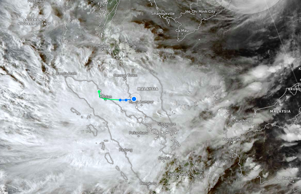 މެލޭޝިއާ، އިންޑޮނޭޝިއާ އަދި ތައިލެންޑް ކައިރީގައި އުފެދިފައިވާ ބާރުގަދަ ކޮޅިގަނޑުގެ ސެޓްލައިޓް ފޮޓޯއެއް.