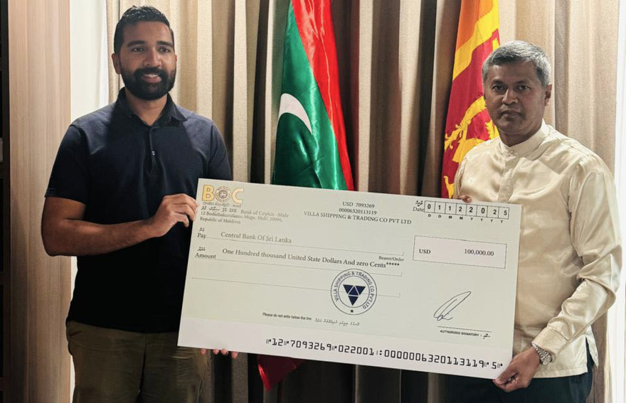 ސްރީލަންކާއަށް އެރި ތޫފާނުގައި އެ ގައުމަށް ލިބުނު ގެއްލުންތަކުން އަރައިގަތުމަށްޓަކައި، ރާއްޖޭގެ ޓޫރިޒަމްގެ ވިޔަފާރި ފުޅާ ދާއިރާއެއްގައި ކުރަމުންދާ ވިލާ ކުންފުނިން އެއް ލައްކަ ޑޮލަރު (1.5 މިލިއަނަށް ވުރެ ގިނަ ރުފިޔާ) މިއަދު ހަދިޔާކޮށްފި އެވެ.