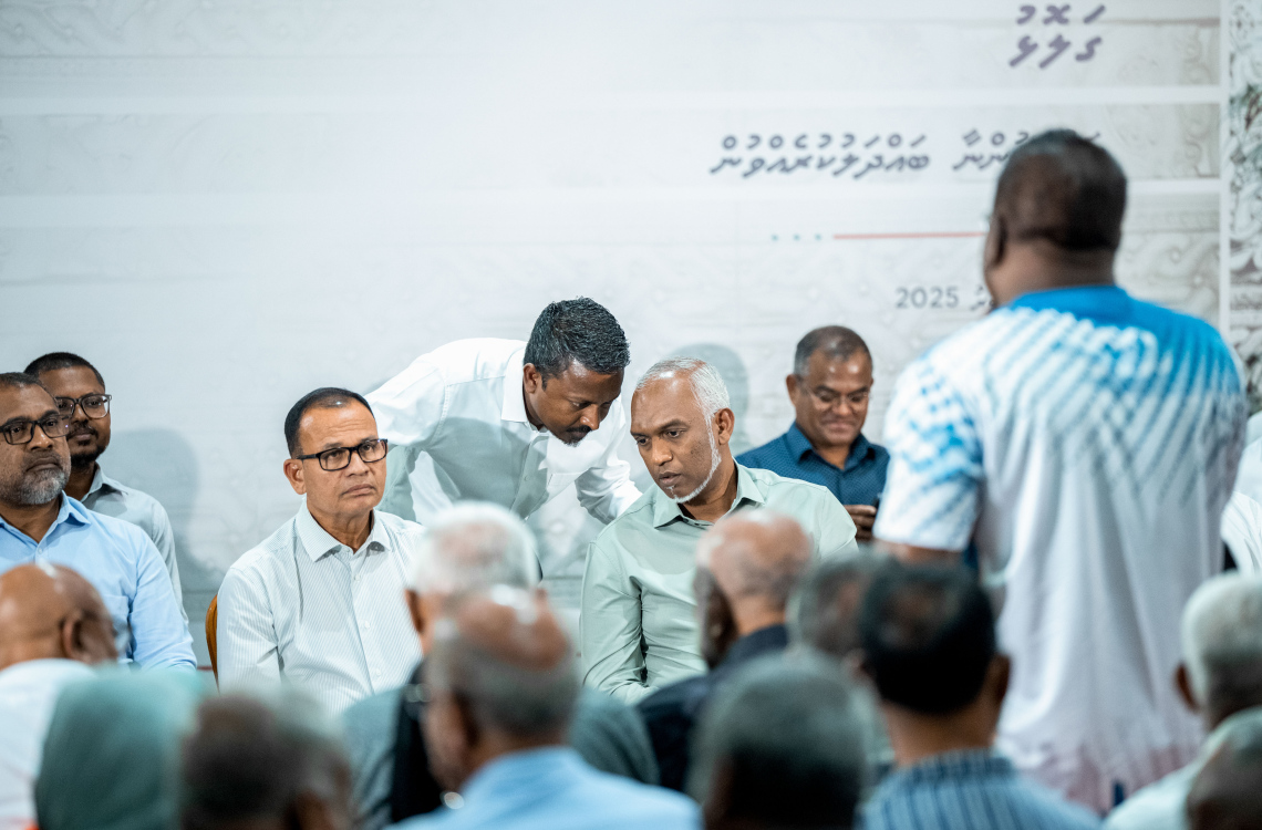 ގަލޮޅުގެ ރައްޔިތުންނާ ބައްދަލުކުރައްވަން ރައީސް މުއިއްޒު ބޭއްވެވި ބައްދަލުވުމުގައި އާންމުންގެ ސުވާލުތައް ރައީސް ނޯޓްކުރައްވަނީ .---ފޮޓޯ: ނިޝާން އަލީ | މިހާރު