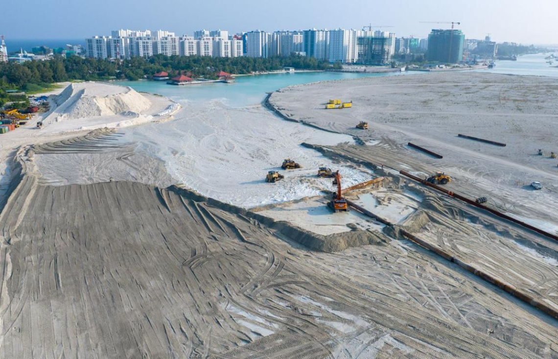 ހުޅުމާލޭގެ ތިންވަނަ ފިޔަވައްސަށް ބޭނުންވާ ބިން ހިއްކުމުގެ މަސައްކަތް ކުރަނީ.---ފޮޓޯ: އެމްއޭސީއެލް
