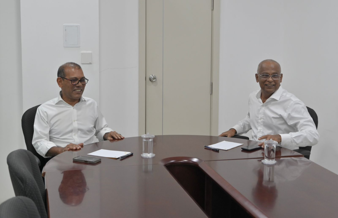 ކުރީގެ ރައީސް މުހައްމަދު ނަޝީދާއި ކުރީގެ ރައީސް އަދި އެމްޑީޕީގެ އެޑްވައިޒަރު އިބްރާހިމް މުހައްމަދު ސޯލިހު (އިބޫ) މިއަދު ބައްދަލުކުރައްވައިފި އެވެ.