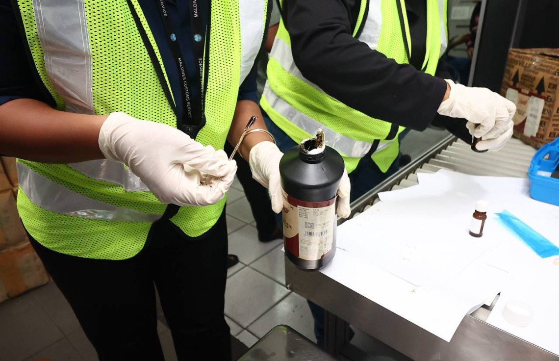 ކަސްޓަމްސް އިން އަތުލައިގަތް ޑްރަގް ޓެސްޓު ކުރަނީ.