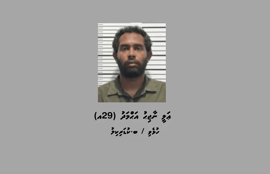 އެ މައްސަލައާ ގުޅިގެން މި މަހުގެ 13 ވަނަ ދުވަހު ފުލުހުން ހައްޔަރުކުރީ ބ. ކުޑަރިކިލު، ހުޅެވި، އަލީ ނާޖިހު އަހްމަދު، 29، އެވެ.