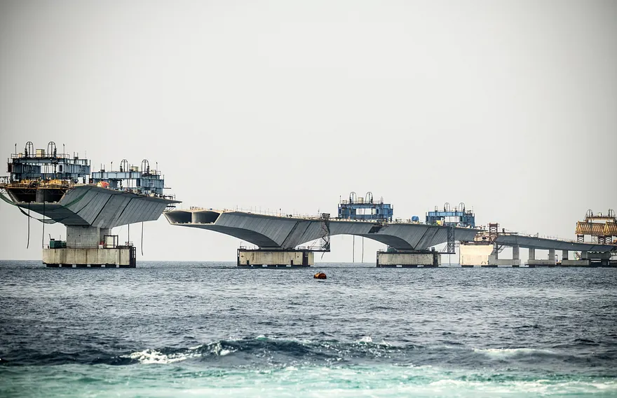 އިންޑިއާ ސަރުކާރުގެ އެހީގައި، އެ ގައުމުގެ އެފްކޮންސް ކުންފުނިން ހަދަމުން އަންނަ 6.7 ކިލޯމީޓަރުގެ މި ދިގު ބްރިޖުގެ 60 ޕަސެންޓް މަސައްކަތް ނިމިފައިވާ ކަމަށް މިދިޔަ އަހަރުގެ ނޮވެމްބަރު މަހު ސަރުކާރުން ބުނެފައިވެ އެވެ. އެ ބްރިޖު އެޅުމަށް މޫދުގެ އަޑީގައި ކުރަން ޖެހޭ ހުރިހާ މަަސައްކަތެއް މިހާރު ހުރީ ނިމިފަ އެވެ.