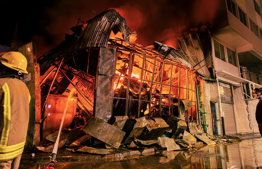 ފަޔާ އެންޑް ރެސްކިއު އިން ގުދަނުން އަލިފާން ނިއްވުމުގެ މަސައްކަތްކުރަމުން އަންނައިރު ފުލުހުން ވެސް އެ ސަރަހައްދުގައި ހަރަކާތްތެރިވެ، އެ މަގަށް ވެހިކަލްތަކަށް ނުވަދެވޭނެ ގޮތަށް ވަނީ ބަންދުކޮށްފަ އެވެ. އަދި އެ ސަރަހައްދުން މީހުން ދުރުކޮށް، އިތުރު އެހީތެރިކަން ފުލުހުން ވެސް ދެމުން އެބަދެ އެވެ.
