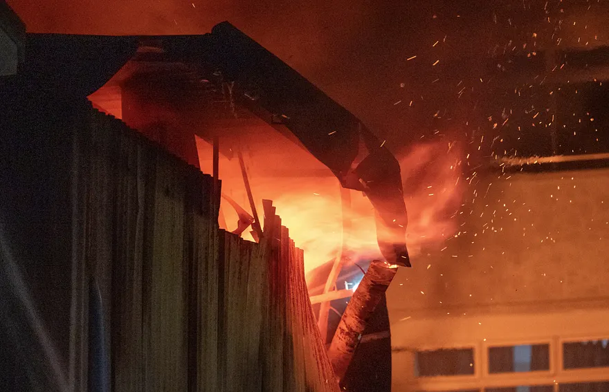 ޓިނާއި ލަކުޑި ފަދަ ތަކެތިން ހަދާފައިވާ އެ ގުދަނުގައި ވަރަށް ބޮޑަށް އަލިފާން ރޯވެ، މުޅި ސަރަހައްދަށް އޮތީ ކެމިކަލް ދުންތައް ފެތުރިފަ އެވެ. އެހެންވެ، އެ ސަރަހައްދުގައި ހުރި 10 ގެއަކުން މީހުން ހުސްކޮށް 77 މީހަކަށް ވަގުތީ ބޯހިޔާވަހިކަން ދޭން ޖެހުނެވެ.