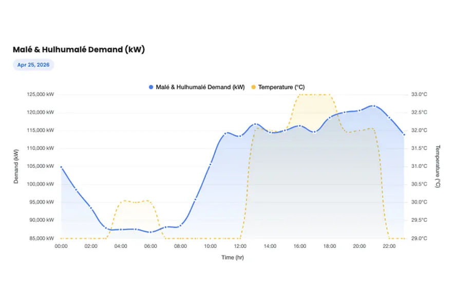 މިދިޔަ 24 ގަޑިއިރުގެ މައުލޫމާތުން އެނގޭ ގޮތުގައި އިއްޔެ ރޭ މެންދަމު 12 ޖެހިއިރު އިހުސާސްވާ ފިނިހޫނުމިން 33.5 ޑިގްރީ ސެލްސިއަސްގައި ހުރި އިރު އެ ވަގުތު މާލެ އާއި ހުޅުމާލޭގައި ކަރަންޓްގެ ޑިމާންޑް ހުރީ 104،863 ކިލޯވޮޓް ގަ އެވެ. އޭރުން ފެށިގެން ފިނިހޫނުމިން އެއްވަރެއްގައި ހިފެހެއްޓިފައި ހުރުމުން، މެންދަމުން އަލިވެ ދޭއް ޖެހިއިރު ކަރަންޓްގެ ޑިމާންޑް 93،474 ކިލޯވޮޓް އަށް ދަށްވި އެވެ. އޭގެ އެއް ގަޑި އިރު ފަހުން ޑިމާންޑް 88.887 ކިލޯވޮޓް އަށް ވެއްޓި، ގާތްގަނޑަކަށް އެ ރޭންޖްގައި ހެނދުނު ހައެއް ޖެހުމާ ހަމައަށް ހުއްޓެވެ. އެ ވަގުތު ފިނިހޫނުމިން ކޮންމެވެސް ވަރަކަށް މައްޗަށް ޖެހިލި ނަމަވެސް ކަރަންޓްގެ ޑިމާންޑް ހުރީ 86،750 ކިލޯވޮޓް ގަ އެވެ.