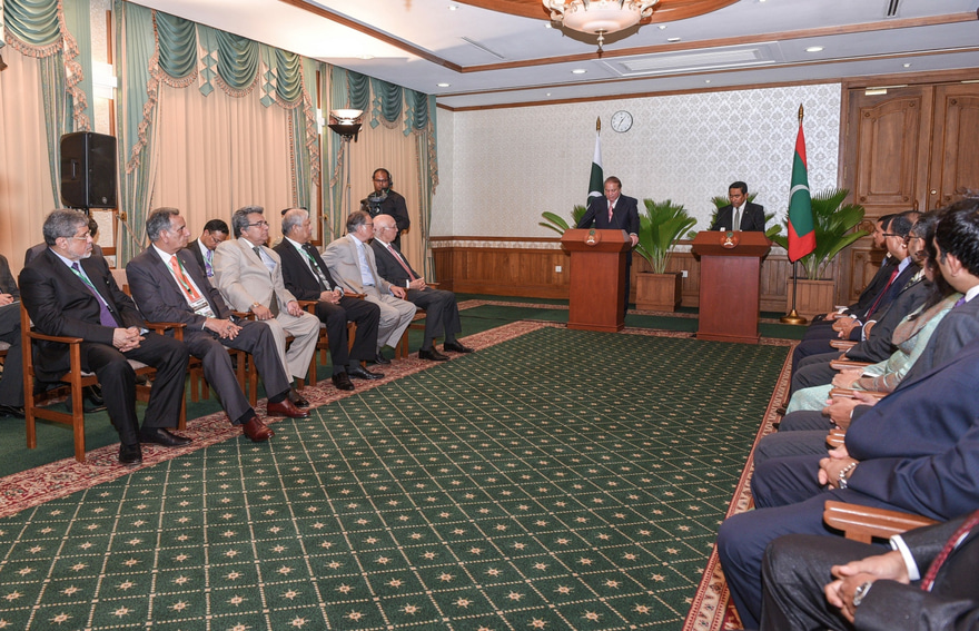 ރައީސް އަބްދުﷲ ޔާމީންގެ ދައުވަތަކަށް މިހާރު ރާއްޖެ ވަޑައިގެން އުޅުއްވާ ނަވާޒު ޝަރީފް، ނޫސްވެރިންނާ ބައްދަލު ކުރައްވައި ވިދާޅުވީ މެޑިކަލް ކޮލެޖެއްގެ އިތުރުން، ސިއްހީ ދާއިރާ އާއި އިންޖިނިއަރިން އާއި ފާމަސީ އަދި ޑެންޓިސްޓު ހިމެނޭ ގޮތަށް ޕާކިސްތާނުގައި މަތީ ތައުލީމް ހާސިލް ކުރުމަށް ދިވެހި ދަރިވަރުންނަށް ސްކޮލަޝިޕްގެ ފުރުސަތުތައް ފަހިކޮށްދެއްވާނެ ކަމަށެވެ.