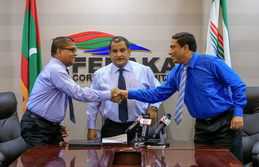 ފެނަކަ ކޯޕަރޭޝަންގެ އޮފީހުގައި ބޭއްވި ރަސްމިއްޔާތުގައި ލަންކާގެ އެޑްވާންސް ސްޓްރީޓް ސްޓްރަަކްޗާސްގެ ޑިރެކްޓަރު ދުޝަން ދަޔަރްތްރޭ އަދި ފެނަކަ ކޯޕަރޭޝަންގެ މެނޭޖިން ޑިރެކްޓަރު މުހައްމަދު ނިމާލް ވަނީ އެއްބަސްވުމުގައި ސޮއިކުރައްވައިފަ އެވެ.