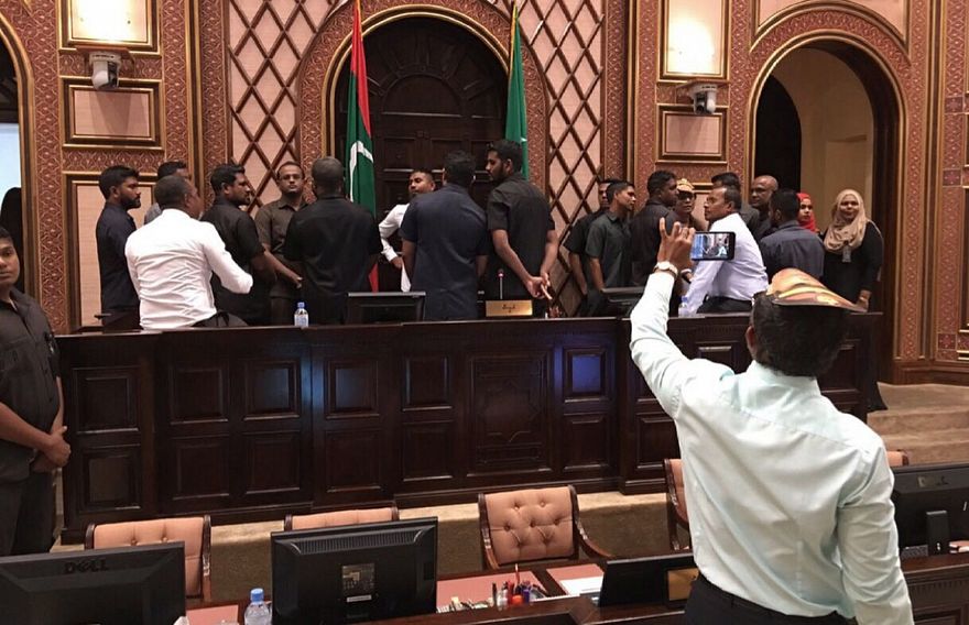 "ތިޔަބޭފުޅުންނަށް [ސިފައިންނާއި ފުލުހުންނަށް] ވެސް ވަރަށް ސާފުކޮށް، ގާތުން ފެނިވަޑައިގަންނަވާނެ. ރާއްޖޭގެ ރައްޔިތުންގެ މަޖިލިސް މިވަނީ އިންތިހާ އަށް ފާލުން ނެއްޓިފައި. ގާނޫނު ބުނާ ގޮތަށް މަޖިލީހުގެ ޖަލްސާއެއް ނުބޭއްވޭ،" ނަޝީދު ވިދާޅުވި އެވެ.