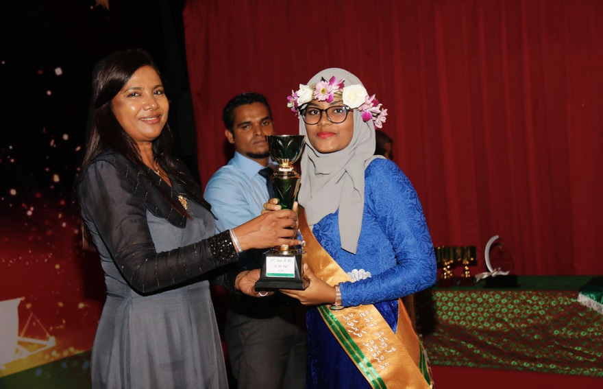 ސޯސަންވިލާގައި ހިންގާ އެމްއީސީސީގެ މި އަހަރުގެ އެންމެ މޮޅު ދަރިވަރު އަދި މި އަހަރު ގްރޭޑް 10 ނިންމި ފައުޒާ އަށް ޚާއްސަ އެވޯޑް ހަވާލުކޮށްދެއްވީ، އެ ސެންޓަރުގެ ދިރާސީ އަހަރު ނިމުން ފާހަގަކުރުމަށް ބޭއްވި ރަސްމިއްޔާތުގައި އެޑިއުކޭޝަން މިނިސްޓަރު ޑރ. އާއިޝަތު ޝިހާމެވެ.