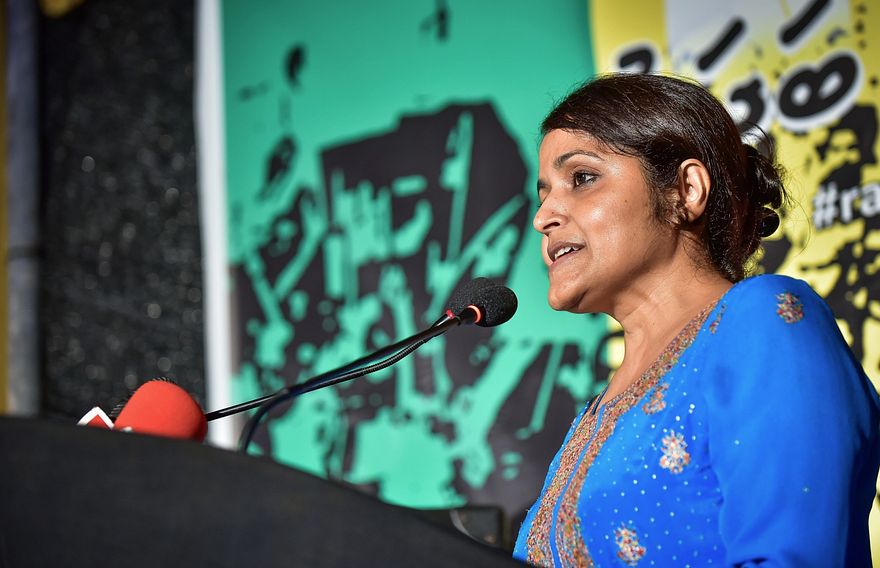 "މިނިވަންކަމާއި އަމިއްލަވަންތަކަން ރައްކާތެރިކަން ނުގެންނަ ގޮތަށް ގެންނަ ތަރައްގީއަކީ ތަރައްގީތޯ؟ ބޭރު ބަޔަކަށް ބަރޯސާވެ، ބޭރު ބަޔަކަށް ދަރައި ވިކިގެން ގެންނަ ތަރައްގީއަށް ތަރައްގީއޭ ކިޔޭނެތޯ؟ ކޮރަޕްޝަނާއި ފަސާދަ އާއި ވައްކަމަކީ ތަރައްގީތޯ؟ ބޭރު ގައުމުތަކާ އޮތް ގުޅުން ކަނޑާލައި ހަމައެކަނި ވަކި ބަޔަކާ ގުޅިގެން ގެންނަ ތަރައްގީއަކީ ތަރައްގީތޯ؟ އިންސާފުވެރި ޝަރީއަތެއް ލިބޭނެ ކަމުގެ އެއްވެސް ޔަގީން ކަމެއް ނެތް. މިއަށް ކިޔާނީ ތަރައްގީތޯ؟ އަޅުގަނޑަށް ހަމަ ޔަގީން ތިއިން އެއްވެސް ބޭފުޅެއް ގަބޫލެއް ނުކުރައްވާނެ މިއީ ތަރައްގީކަމަކަށް. ރައްޔިތުން ބޭނުންވަނީ މި ތަރައްގީއެއް ނޫން،" ޔުމްނާ ވިދާޅުވި އެވެ.