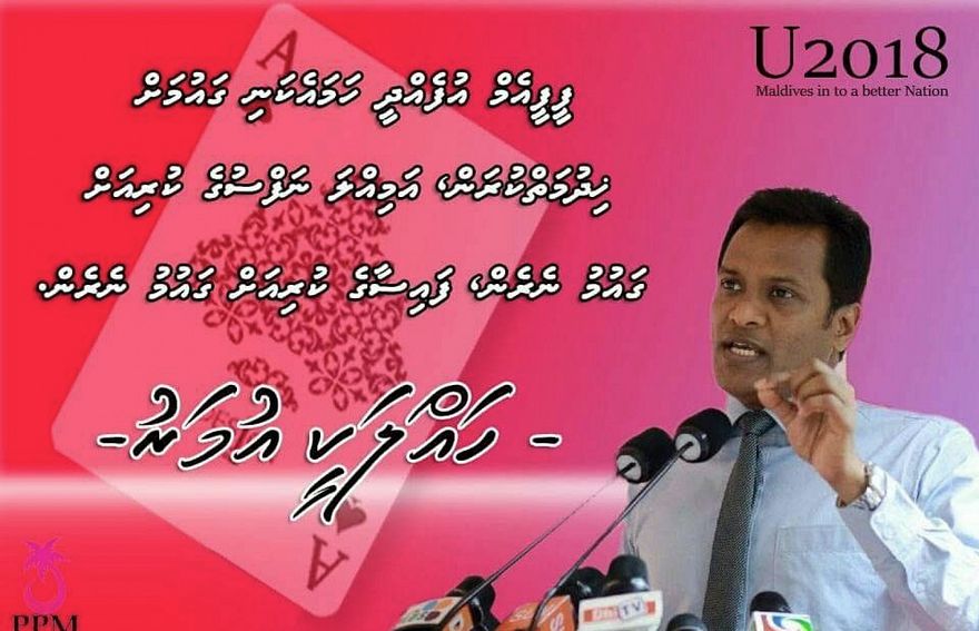 "ޔޫ2018" ޖައްސަވައި ޓުވީޓް ކުރެއްވި ފޮޓޯގައި ޕީޕީއެމް އެތެރޭގައި އުފެދިފައިވާ މައްސަލަ އަށް އިޝާރަތްކުރައްވައި ނުސީދާކޮށް ރައީސް އަބްދުﷲ ޔާމީނަށް މެސެޖްތަކެއް ދެއްވާފައިވާ ކަމަށް ބެލެވެ އެވެ.